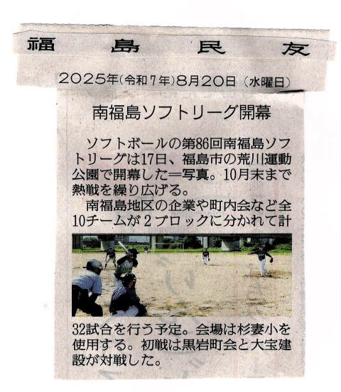 8月20日(水) 福島民友新聞に開幕戦の記事が載りました。