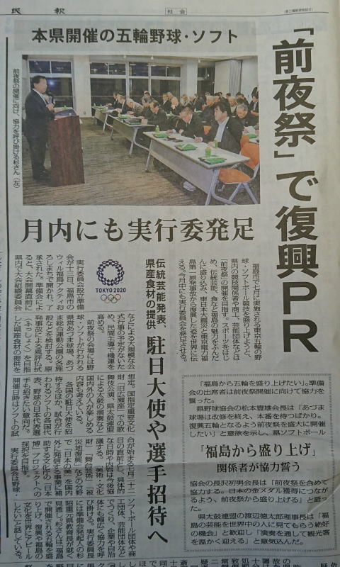 前夜祭実行委員会が発足しました。(福島民報新聞2020.2.9)